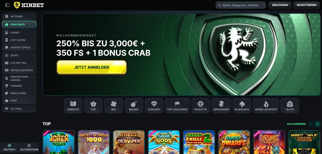 Kinbet ist eines der neuesten Casinos auf unserer Liste. Erst Ende 2024 hat diese Plattform ihre virtuellen Tore geöffnet, seitdem können Sie bereits mehr als 5.000 Spiele spielen. Im Fokus stehen wie immer die Slots mit einer großen Auswahl an Jackpot-Automaten. Tischspiele und Live Casino Spiele, darunter jede Menge Spielshows, runden das Angebot ab.